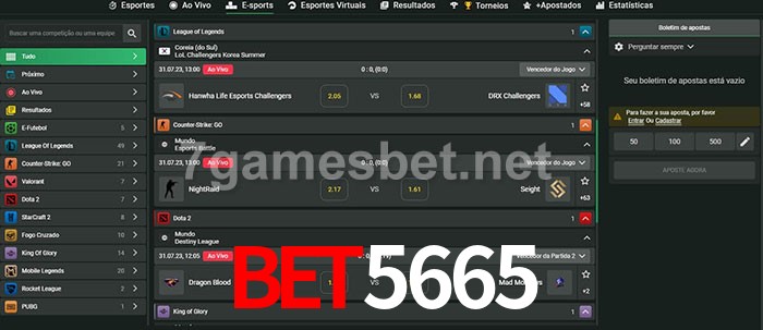 O bet5665 oferece uma grande seleção de opções de apostas em e-sports com probabilidades competitivas